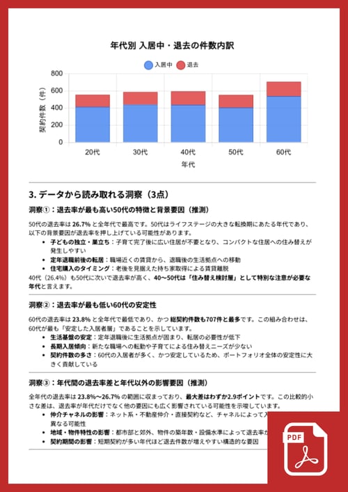 退去率の高い年代層に対するマーケティング施策の検討材料がほしい